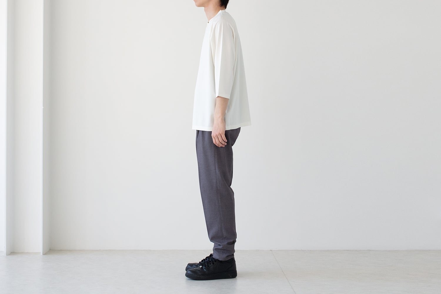 ハイゲージで編み立てしているので透け感もほぼ無く、自然なドレープが清潔感を演出します。