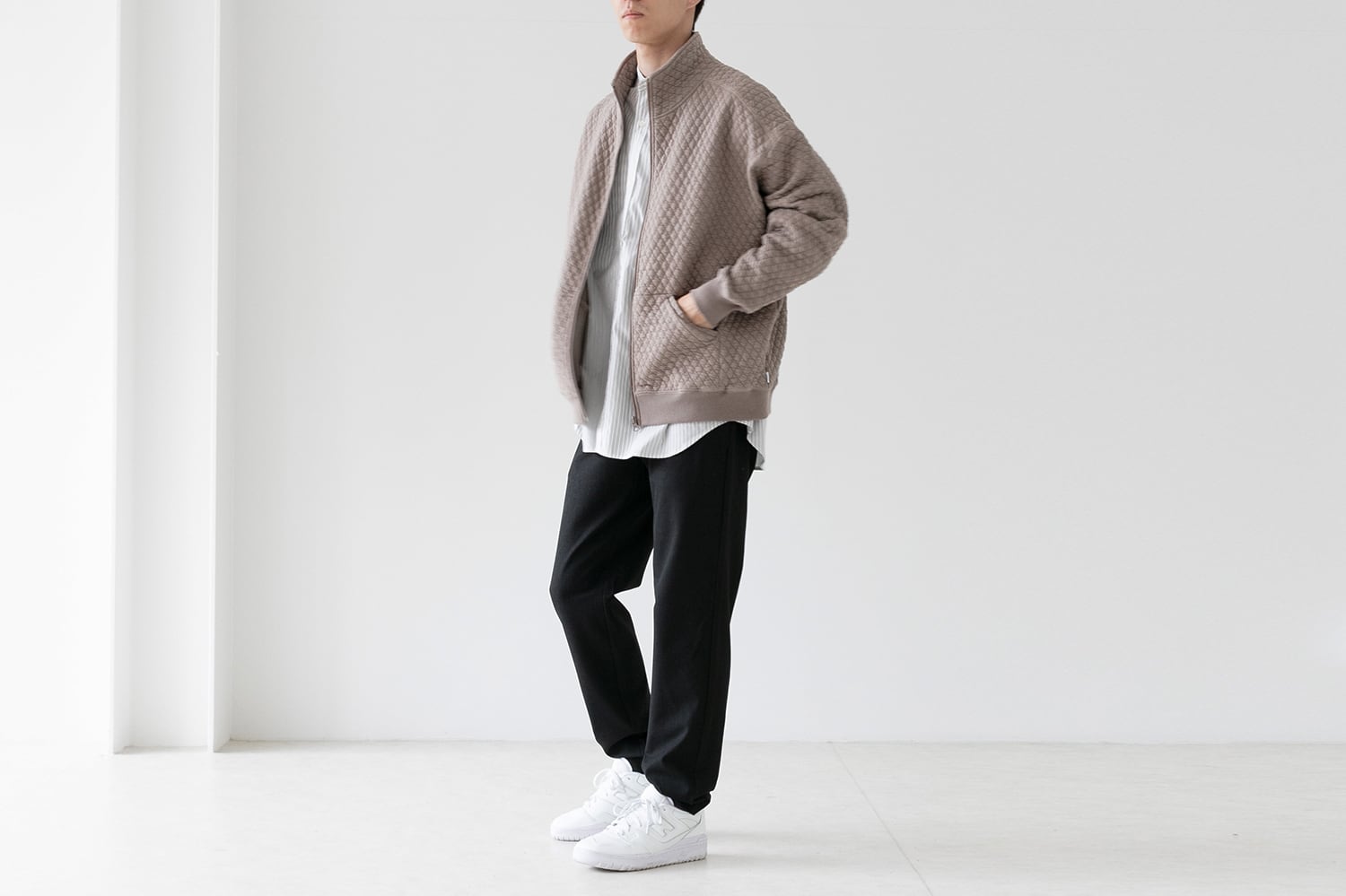 キルティングカットソー - スタンドジップブルゾン