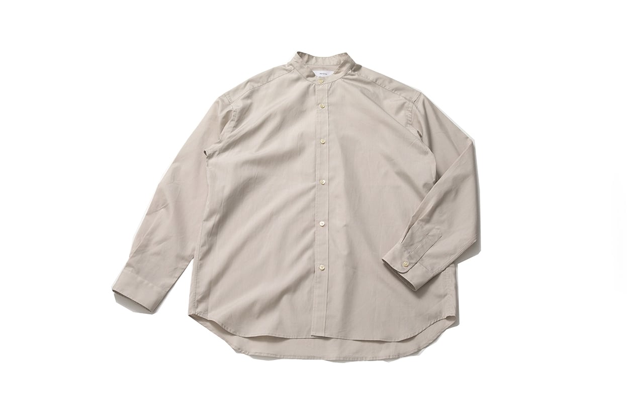 100/2 COMPACT YARN BROAD - OVER SIZED BAND COLLAR SHIRT:100/2コンパクトヤーンブロード - オーバーサイズバンドカラーシャツ