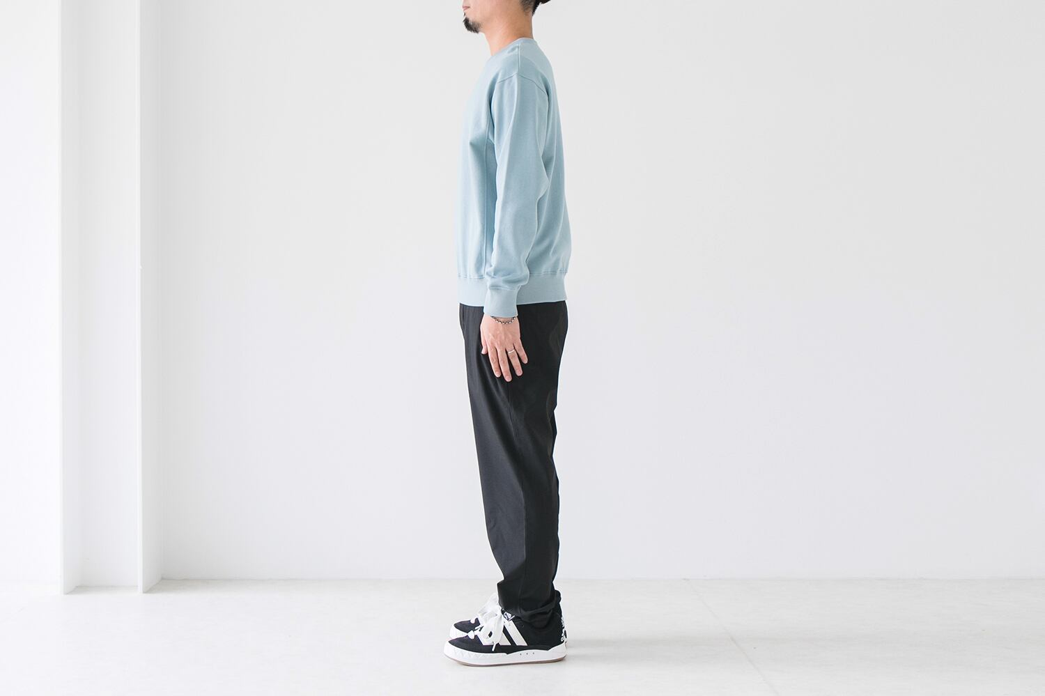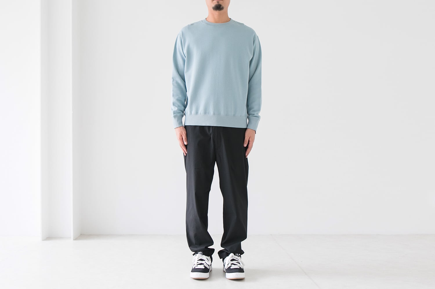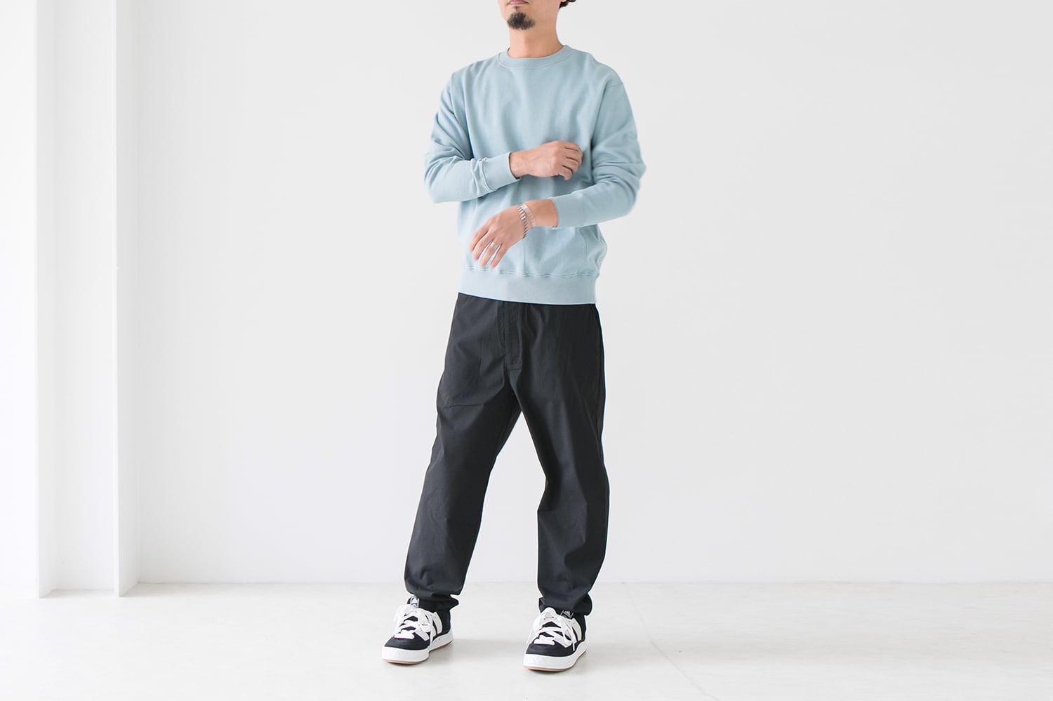 通常のスウェットよりもやや薄肉なので、端境期にも活躍する一着です。