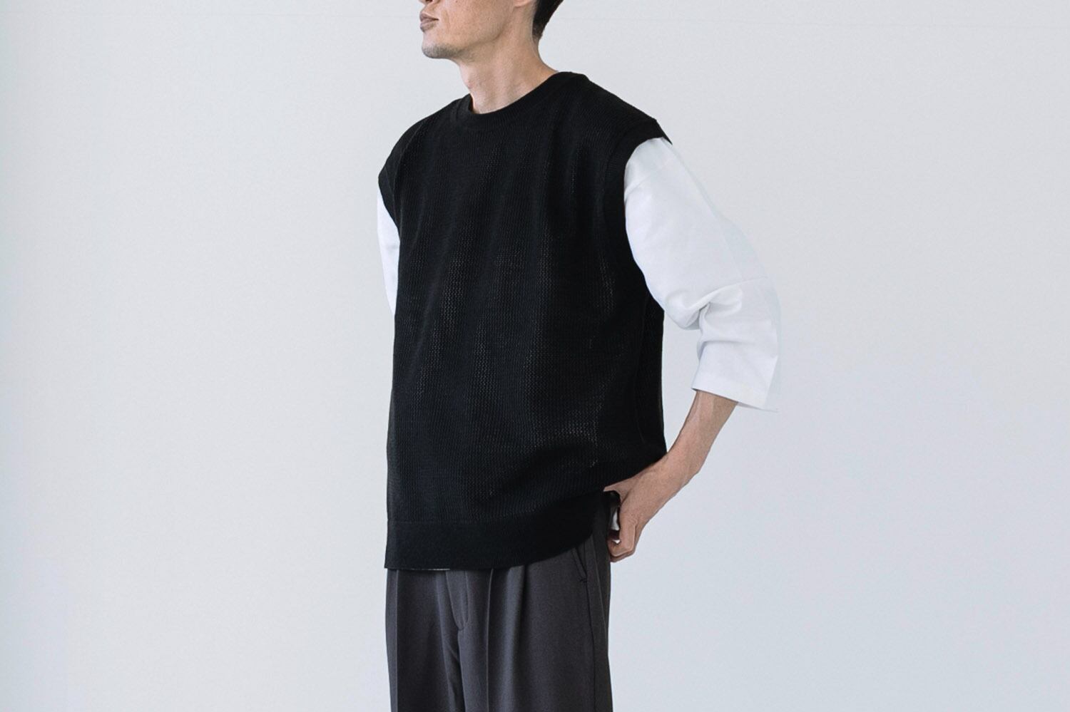 凹凸感のあるメッシュ編みが特徴のニットベスト。