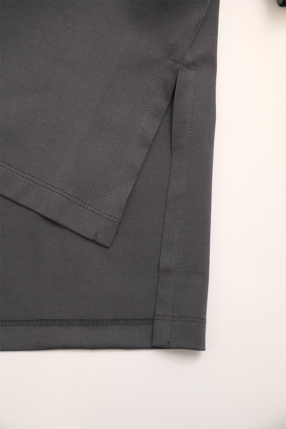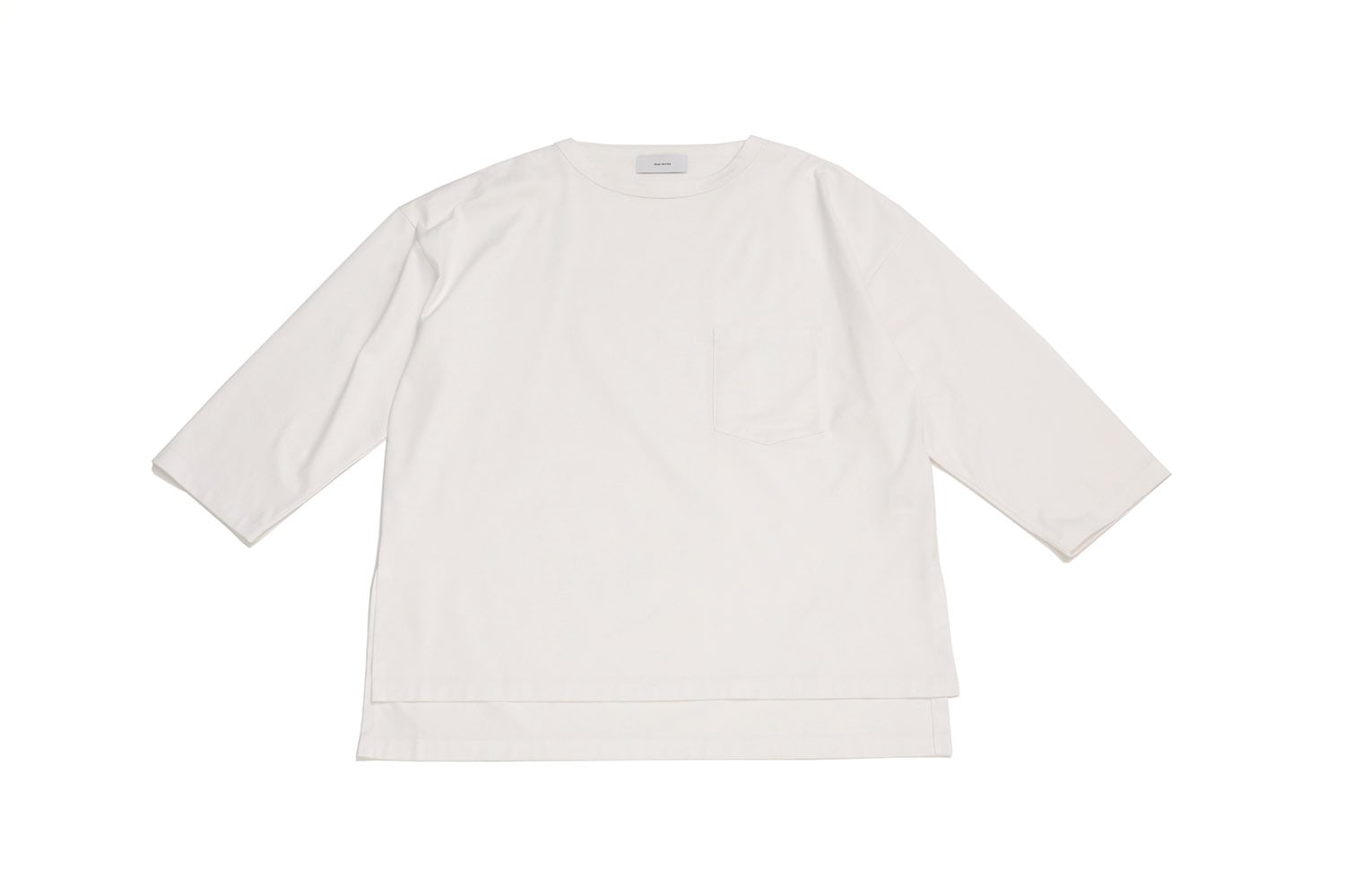 HIGH GAUGE MARSERIZE JERSEY - CROPPED SLEEVE SIDE SLIT TEE : ハイゲージマーゼライズ天竺 - クロップド袖サイドスリットTEE【日本製】
