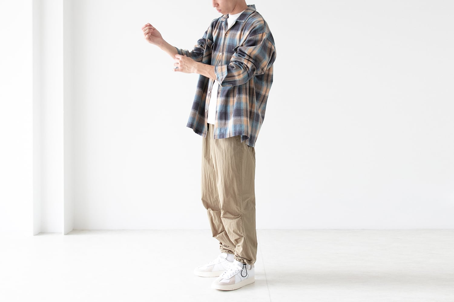 温かみのある配色がシーズンムード漂う、オンブレチェックのオープンカラーシャツ。