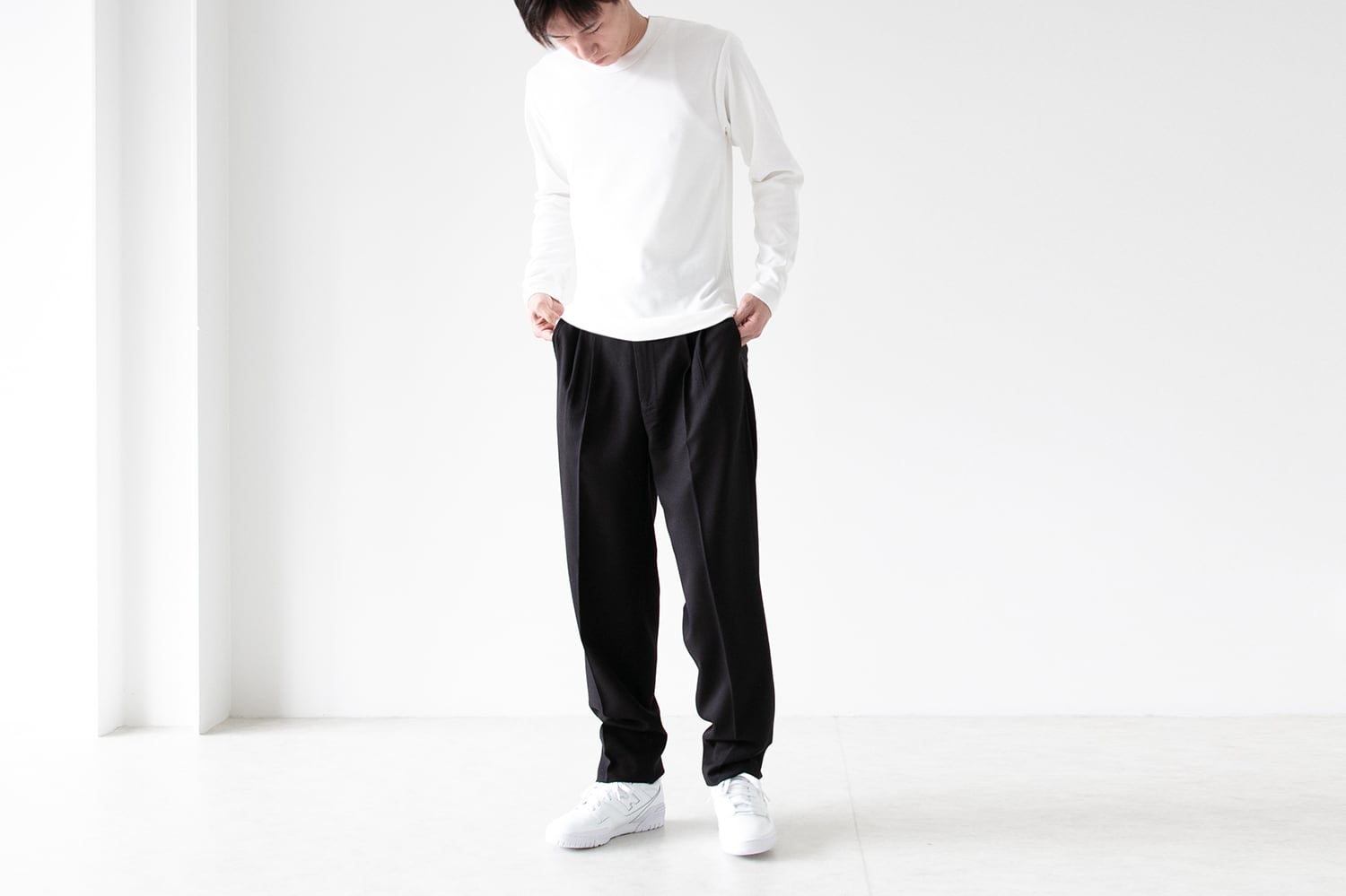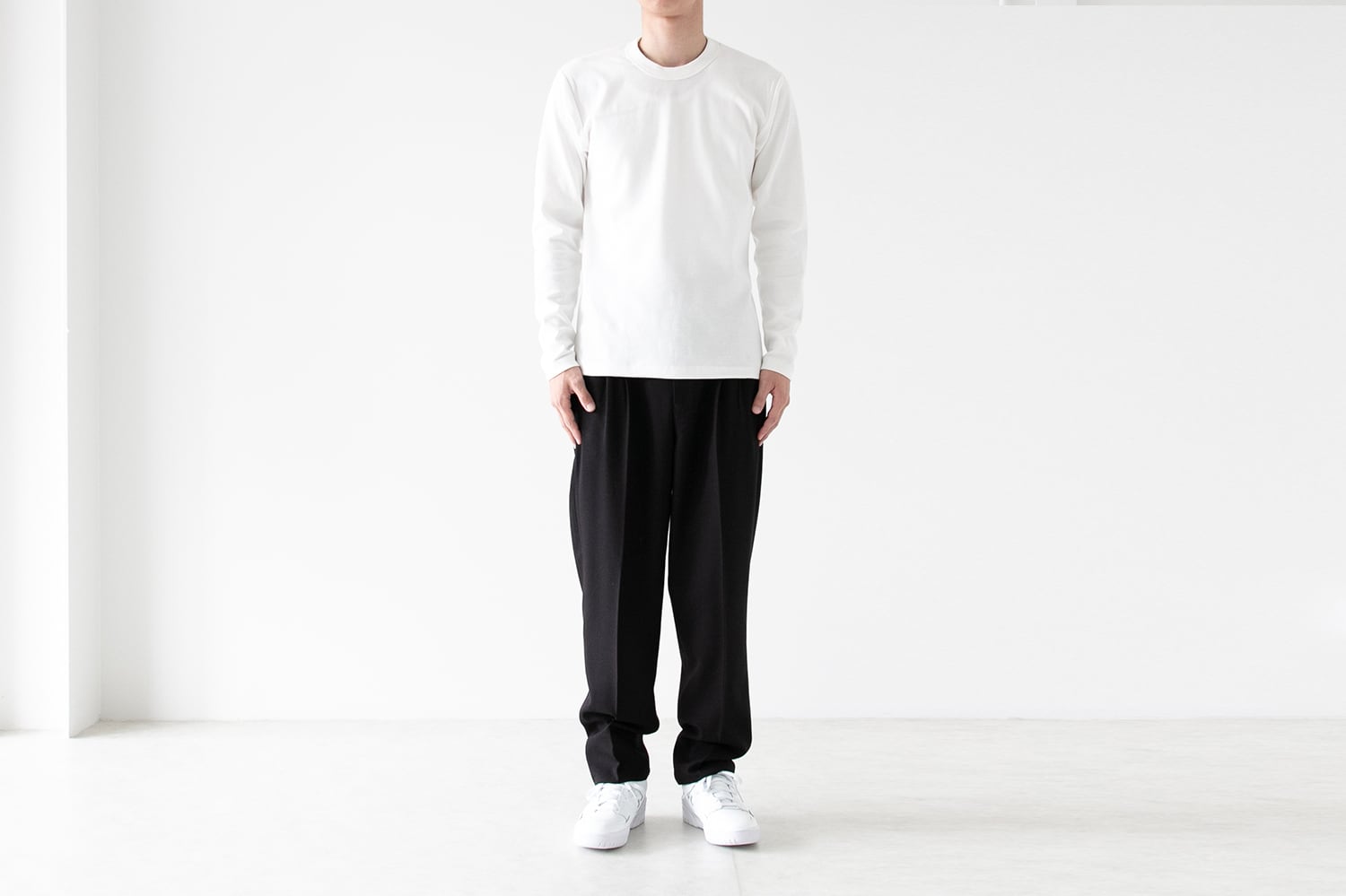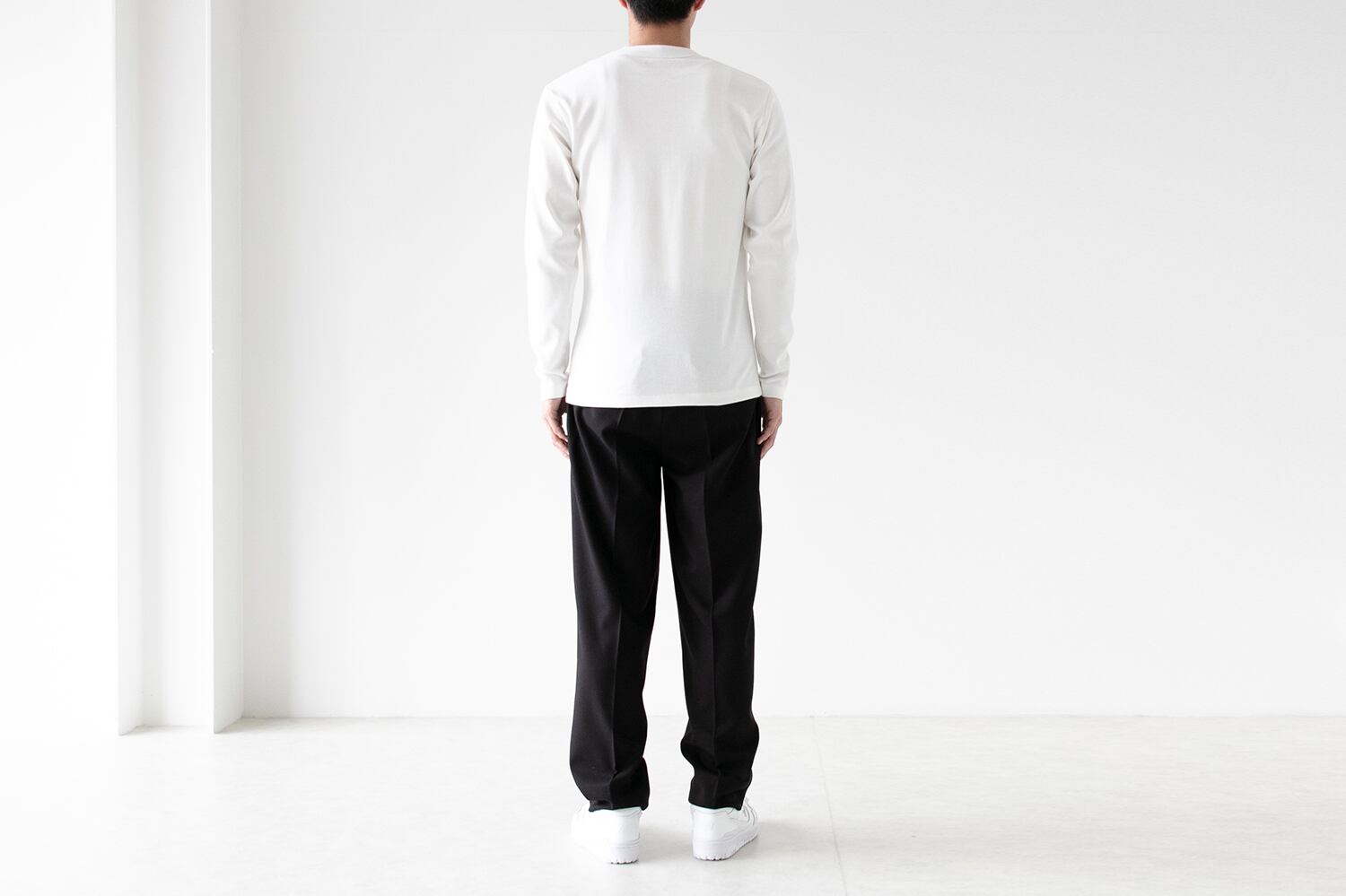 タイトフィットに設定したこちらのロンTは、インナーとして着用することを考慮したやや深めのネックライン。肌あたりを考え、プリントネームを起用するなど、細部にまで着用時の快適さにこだわった一着となっています。